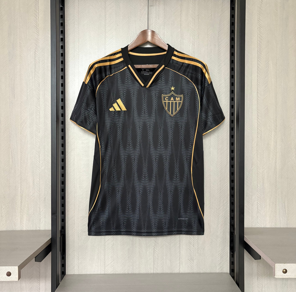 A camisola Atlético Mineiro III 25/26, assinada pela Adidas, é uma homenagem visual ao símbolo máximo do clube: o Galo, conhecido por sua garra e resistência. O novo manto alternativo chega com identidade forte, representando a alma do torcedor atleticano.