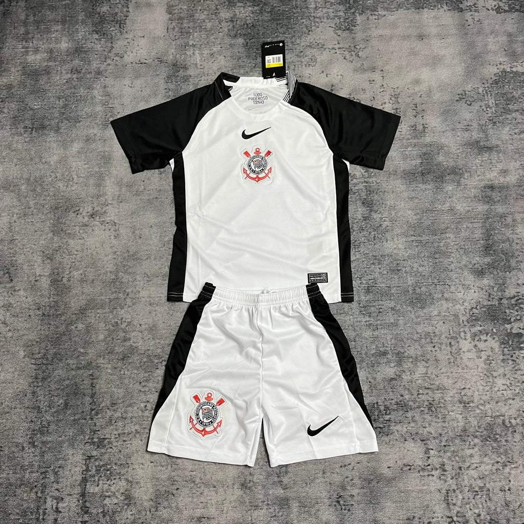 O Conjunto Infantil Corinthians I 25/26 homenageia um dos momentos mais gloriosos da história do clube: a conquista do Mundial de Clubes da FIFA em 2000. Em comemoração aos 25 anos desse feito, a Nike apresenta uma camisa que mistura tradição, emoção e orgulho alvinegro em cada detalhe — agora em versão infantil para os pequenos corinthianos.