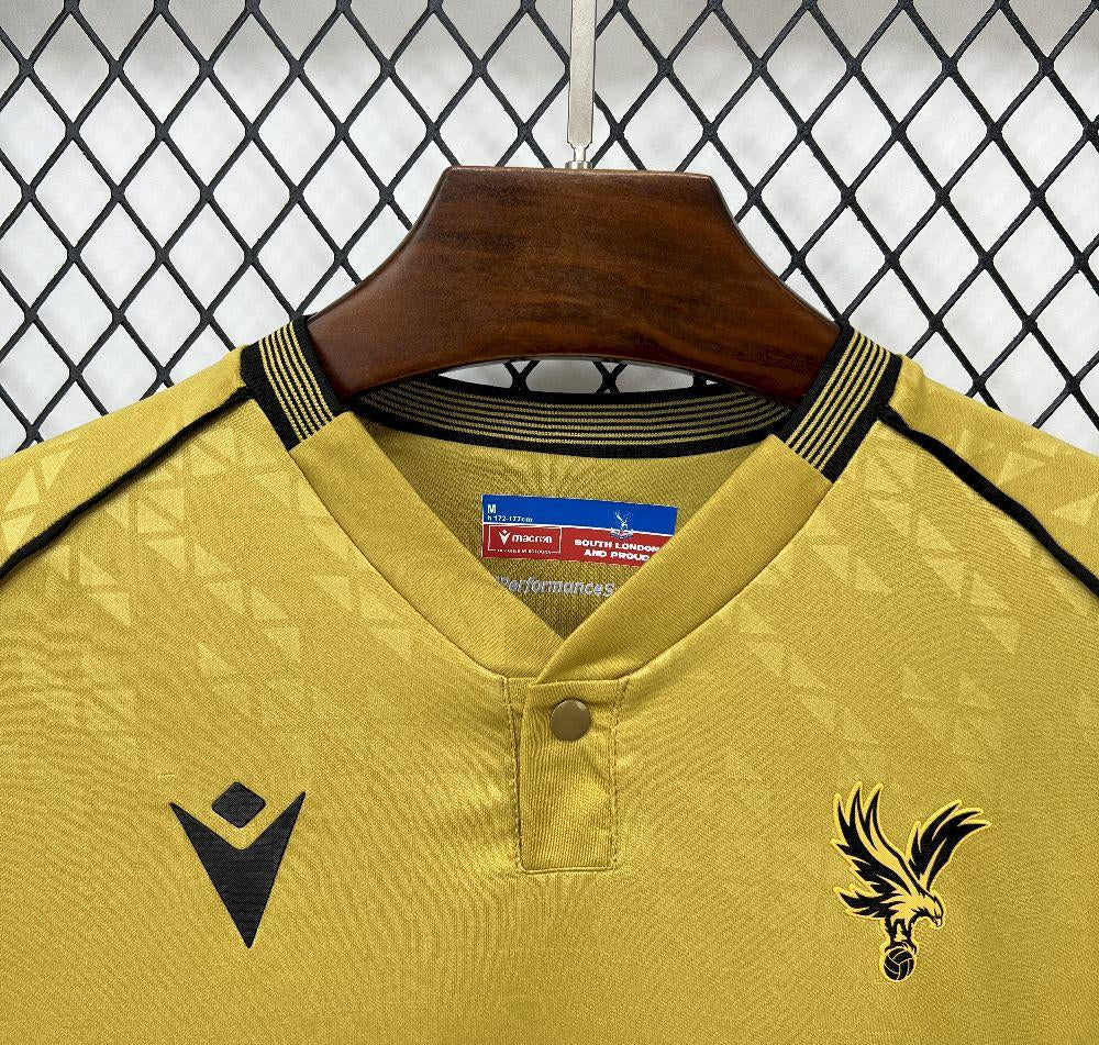 Batizado de “Eagle Gold” (Águia Dourada), o manto presta homenagem à histórica conquista da FA Cup 2024/25, quando o Palace venceu o Manchester City por 1 a 0. A camisa carrega um visual retrô moderno, com referências aos anos 90.