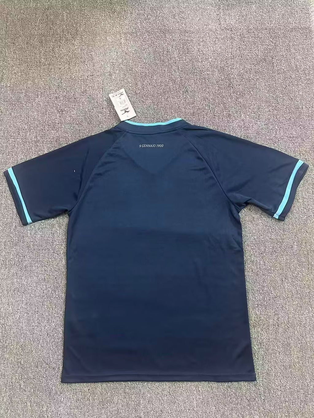 Nas costas, a malha com tecnologia mesh proporciona maior ventilação, enquanto as mangas raglan garantem amplitude de movimento e conforto. A inscrição “9 GENNAIO 1900” sob a gola traseira relembra com orgulho a fundação do clube.