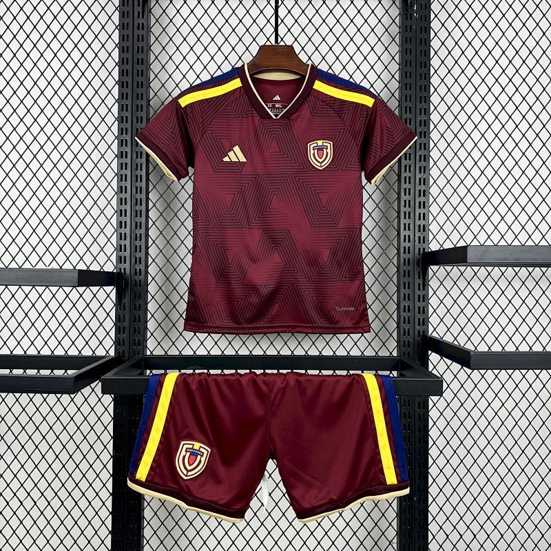 O conjunto infantil da camisola Venezuela I 25/26 celebra o estilo icónico da seleção vinotinto com um visual que combina tradição, identidade e conforto para os mais jovens torcedores.