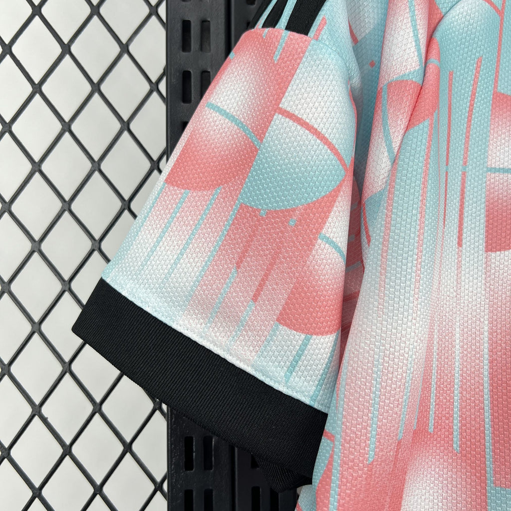 Este visual exclusivo presta homenagem ao artista surrealista belga René Magritte, trazendo um conceito criativo e diferenciado para o uniforme. Na parte traseira da gola, surge a frase “Isto não é uma camisa de time”, referência direta à icónica obra A Traição das Imagens, reforçando a identidade cultural da peça.