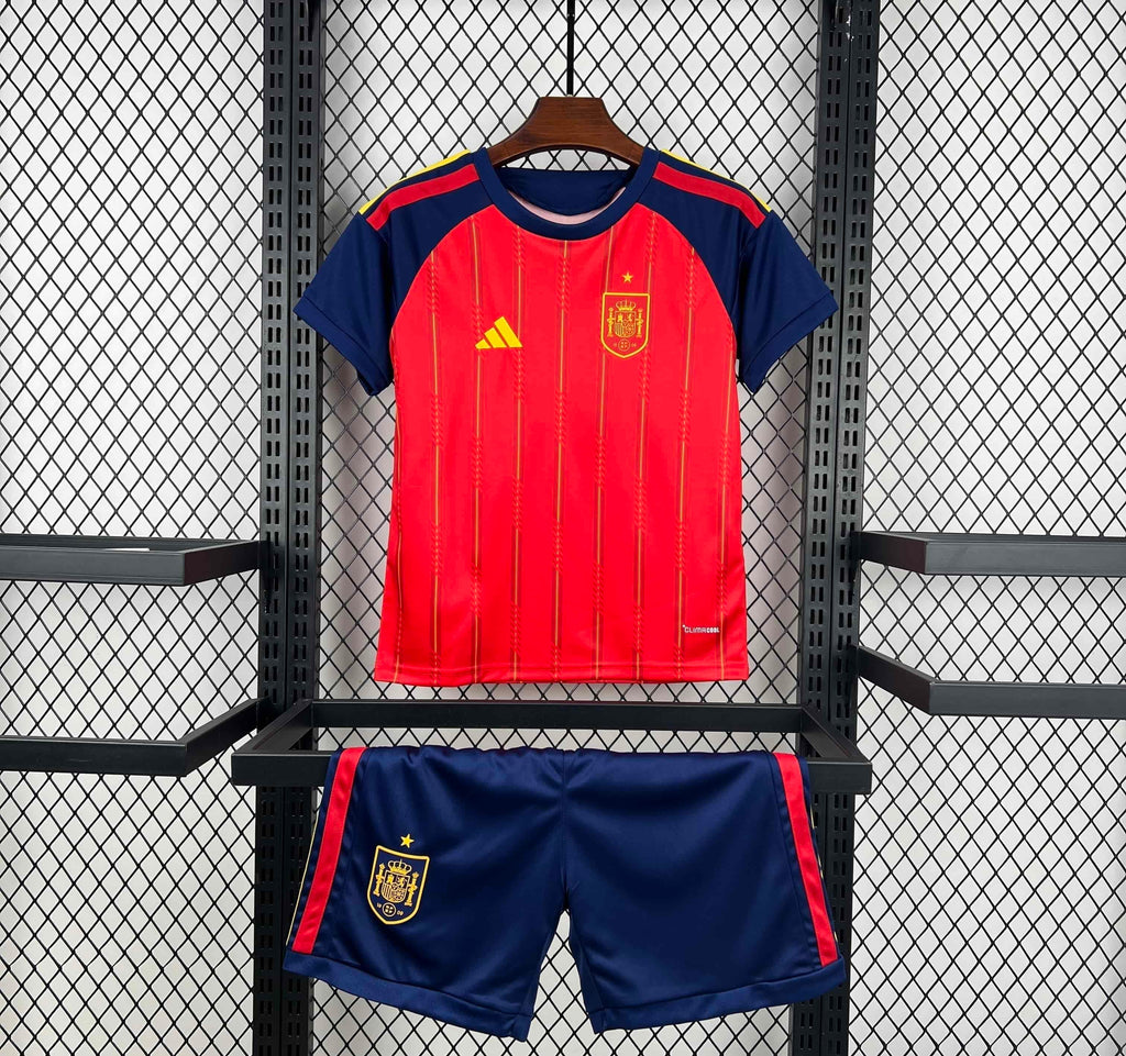 🇪🇸 A camisola perfeita para os pequenos torcedores acompanharem a Espanha com paixão na jornada rumo à Copa do Mundo 2026!