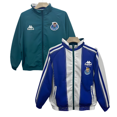 De um lado, o FC Porto Fato de Treino Dupla Face Retro 25/26 Unissexo apresenta um design azul e branco inspirado nas épocas douradas do clube, com linhas vintage e identidade marcante. Do outro lado, o FC Porto Fato de Treino Dupla Face Retro 25/26 surge num elegante tom verde, minimalista e moderno, ideal para um look casual e discreto.