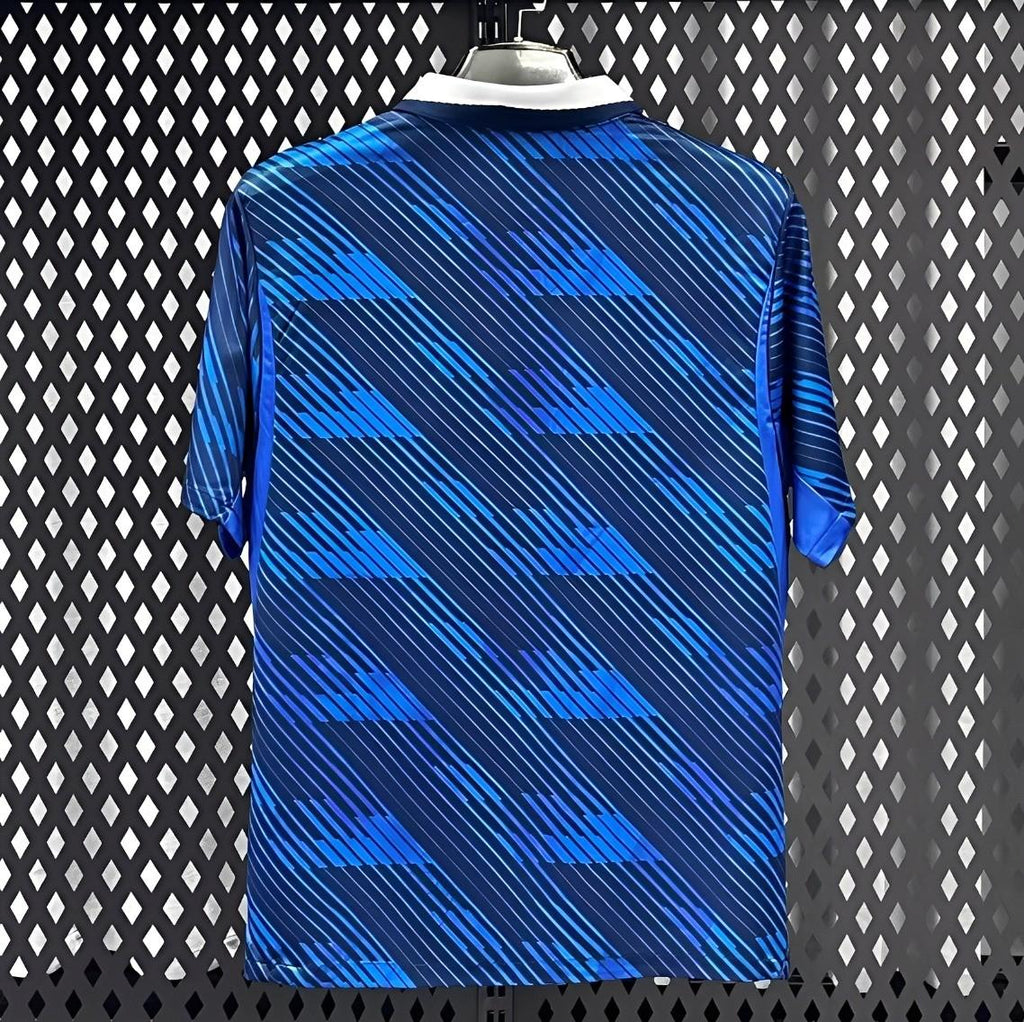 Apresentamos a icónica camisola França principal 26/27, modelo masculino, pensada para representar a tradição e a força da seleção francesa na Copa do Mundo 2026. Com um design que remete a clássicos do passado, este novo uniforme combina o azul profundo com padrões gráficos dinâmicos e modernos em tons de azul claro, criando uma estética única e marcante.
